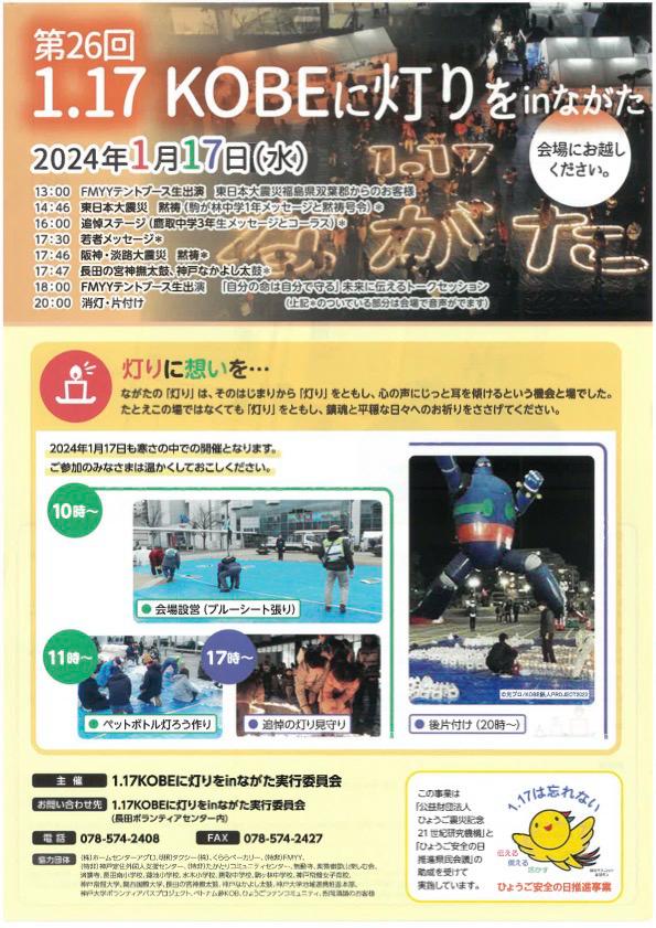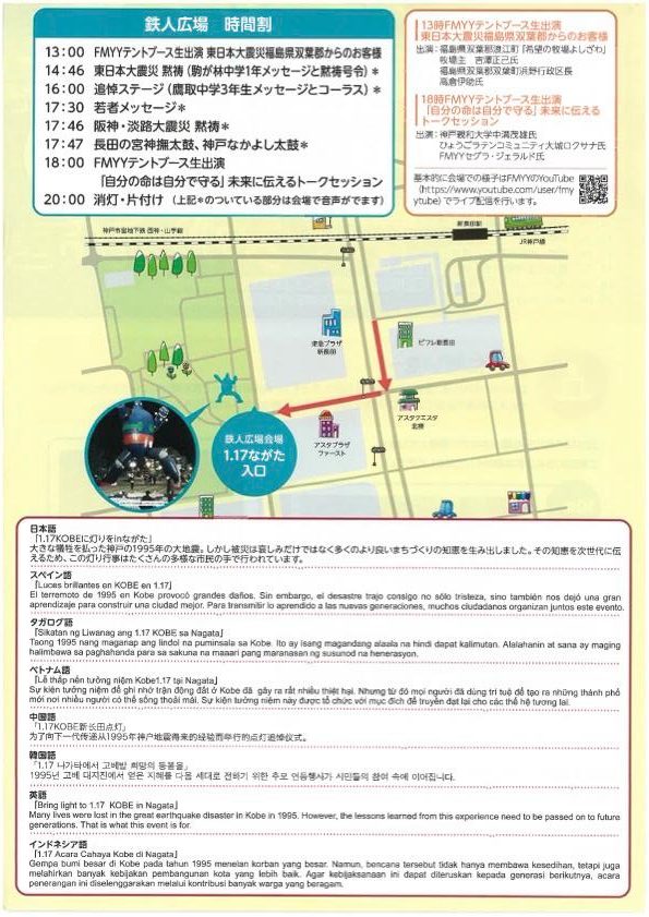 El terremoto de 1995 en Kobe provocó grandes daños. Sin embargo, el desastre trajo consigo no sólo tristeza, sino también nos dejó un gran aprendizaje para construir una ciudad mejor. Para transmitir el aprendizaje a las nuevas generaciones, muchos ciudadanos organizan juntos este evento.
