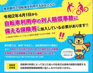 A partir de este miércoles 1 de abril en Tokio, entrará en vigencia la ordenanza que exige a los usuarios de bicicletas contratar un seguro. Las principales compañías de seguros vienen trabajando a fin de facilitar el acceso a ellos a través de tiendas de conveniencia y aplicaciones en teléfonos inteligentes.