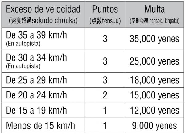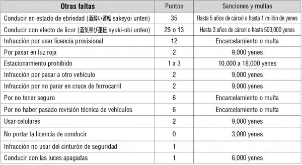 Toda persona que posee una licencia de conducir empieza con «0” puntos y va acumulándolos de acuerdo a las faltas cometidas. Los puntos vuelven a «0” al cumplirse un año contando desde el día en que acumuló los últimos puntos. Es importante saber que cuando un conductor llega a acumular un mínimo 6 puntos, se le suspende la licencia de conducir (menkyo teishi 免許停止, comúnmente llamado MENTEI 免停) por un tiempo establecido de acuerdo a la falta cometida. Además, cuando un conductor llega a acumular 15 puntos, se le anula la licencia de conducir (menkyo torikeshi 免許取り消し).
