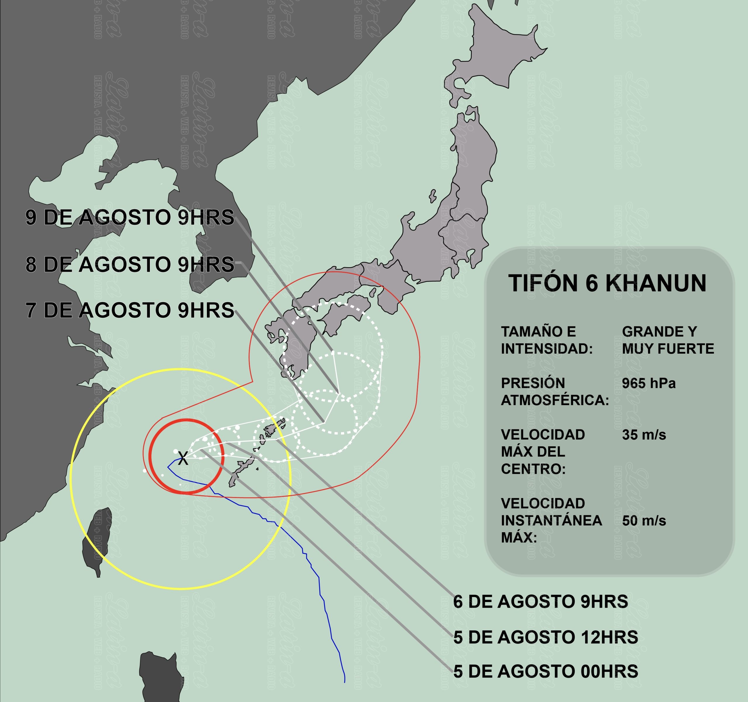 El muy fuerte tifón No 6 (KHANUN) cuya presión central es de 965 hPa con vientos cuya velocidad máxima cerca del centro es de 35 m/s, se encontraba alrededor de las 18:00 horas de hoy día 4 de agosto, a … Leer más