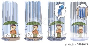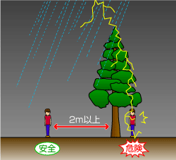Trueno (Kaminari 雷): Si escuche el ruido de un trueno, tenga cuidado porque puede caer un rayo. Si está en la calle, refúgiese en un lugar seguro como un edificio, etc. Refugiarse bajo un árbol y usar paraguas es muy peligroso.