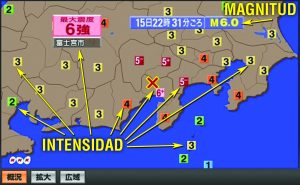 Diferencia entre magnitud (Magunichyudoマグニチュード) e intensidad sísmica (shindo 震度):