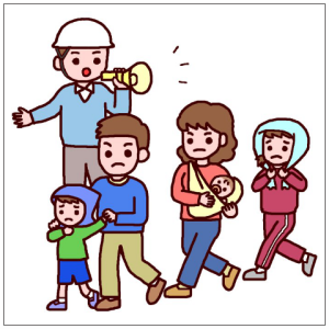 Hinan junbi避難準備 (preparación de evacuación): Preparar y ayudar a evacuar a las persona que no pueden valerse por si misma. Entrar en contacto con la familia y hacer preparativos para evacuar, sacar provisión de emergencia como alimentos no perecibles y la mochila de emergencia y esté listo para evacuar en cualquier momento.
