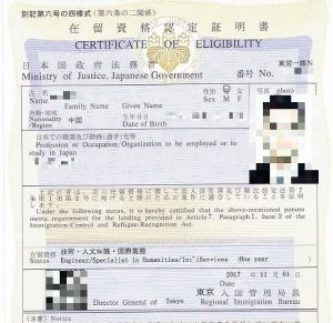 El certificado de elegibilidad (Zairyou Shikaku Nintei Shomeisho), es la solicitud que se realiza ante la oficina de inmigración a fin de que permita el ingreso de un extranjero.