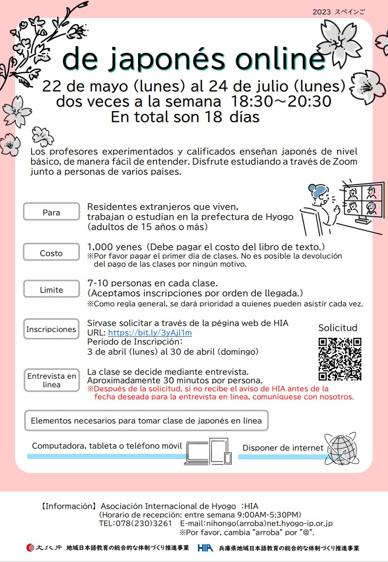 Dirigido a: Residentes extranjeros que viven, trabajan o estudian en la prefectura de Hyogo(adultos de 15 años o más)