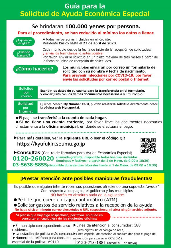 Información sobre la ayuda económica especial de los 100,000 (Tokubetsu teigaku kyūfukin 特別定額給付金)