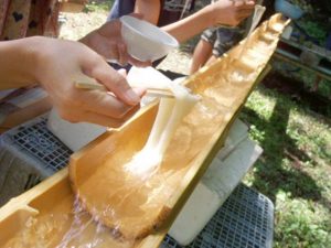 Nagashi-Somen que traducido literalmente al español sería «fideos deslizándose”, es una actividad muy popular durante el verano y típica en los festivales al aire libre que se celebran en dicha época. Una forma muy original y divertida de comer fideos que gusta especialmente a los niños, para la que se necesita tener un buen manejo del ohasi (palillos)