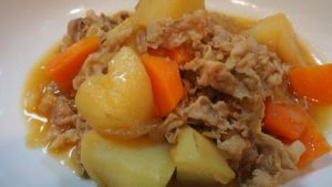 Es un estofado tradicional de la cocina japonesa cuyos principales ingredientes son carne, papas y cebolla cocidas con salsa de soja dulce. La carne empleada suele ser de vaca, finamente picada en rodajas, aunque en algunas localidades del Este de Japón prefieren utilizar carne de cerdo.