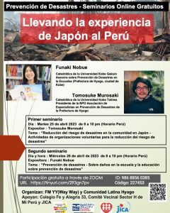Día y hora:Miércoles 26 de abril de 2023 de 8 a 10 pm (Horario Perú)/ Jueves 27 de abril de 10 a 12 Hrs. (Horario Japón)