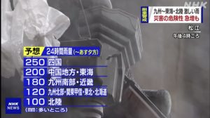 Existe el peligro de que el riesgo de ocurrir desastres aumente drásticamente durante mañana  18, especialmente en el oeste y este de Japón. Verifique la información de evacuación del gobierno local y pase su tiempo en un lugar seguro.