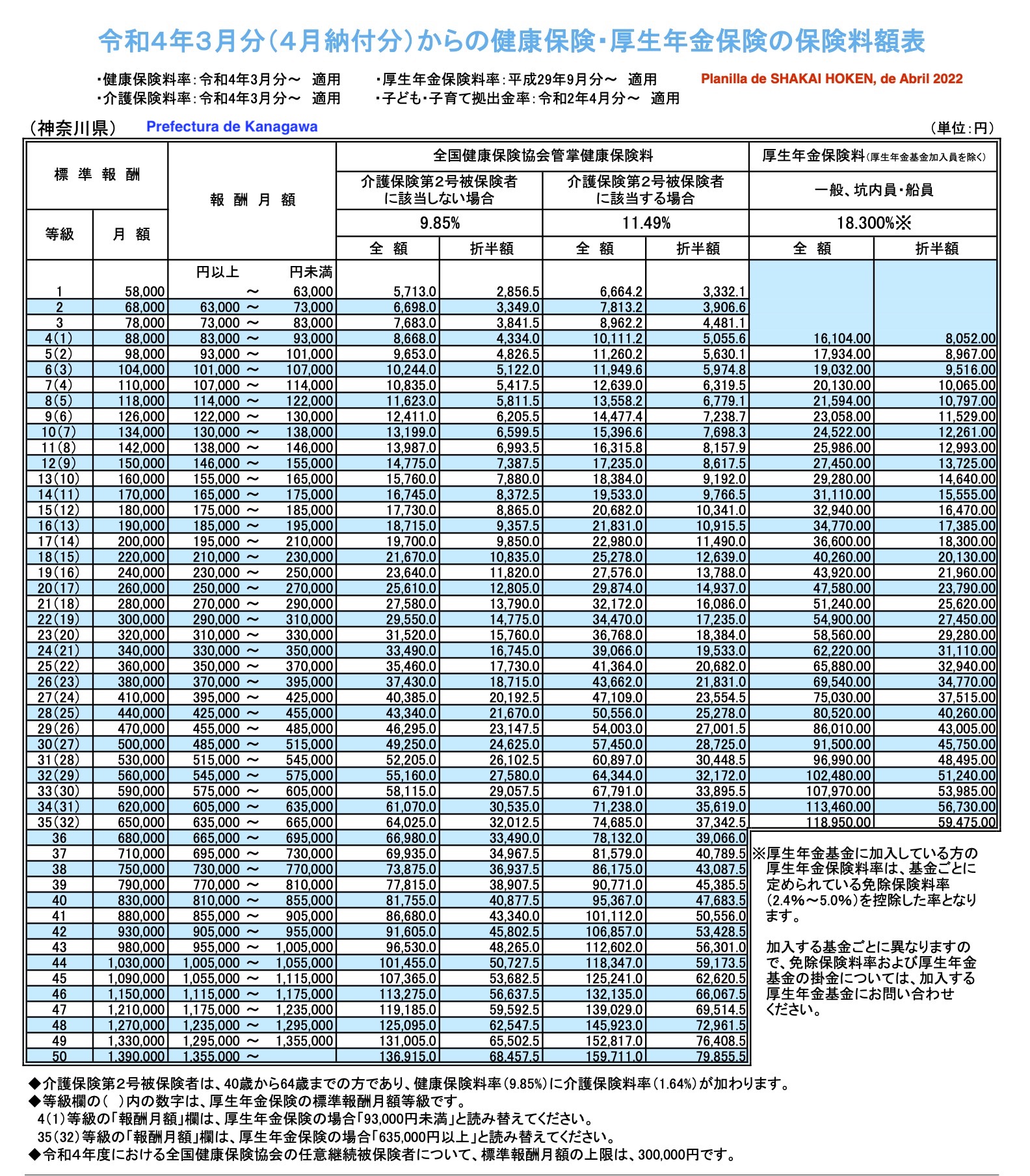 Cabe aclarar que cada Prefectura tiene su porcentaje para el seguro de salud «kenko hoken”.