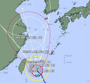 Se espera que el tifón se desplace hacia el norte manteniendo su intensidad, y se acerque a las islas Sakishima mañana 12.
