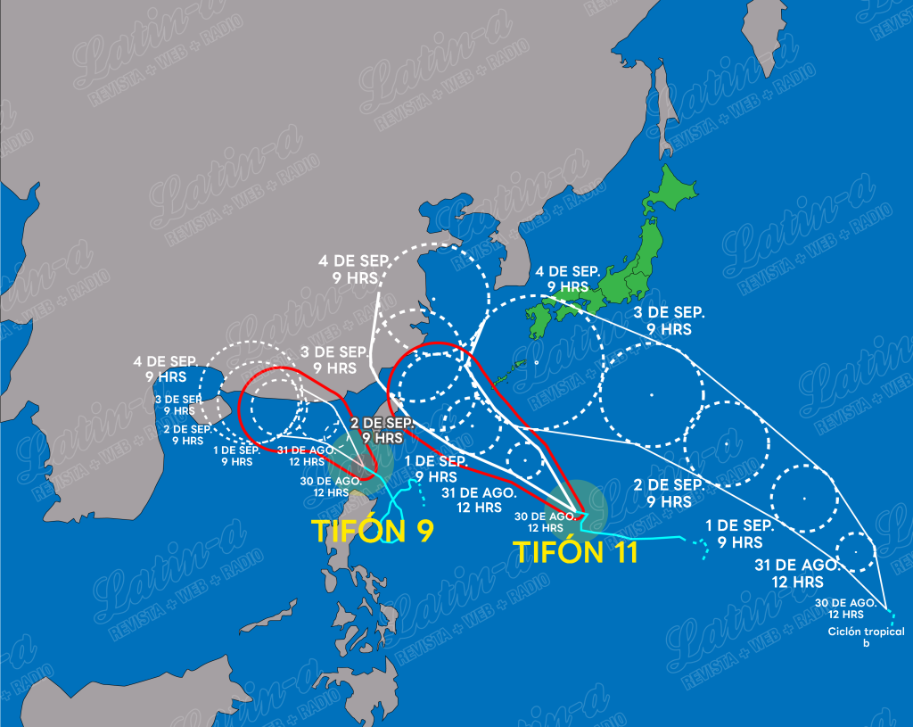 Además, hay un ciclón tropical frente a la costa del extremo sureste de Japón, que se convertirá en el tifón número 12 en las próximas 24 horas y se desplazará hacia el noroeste, dirigiéndose al sur del oeste de Japón alrededor del 4 de septiembre (lunes).